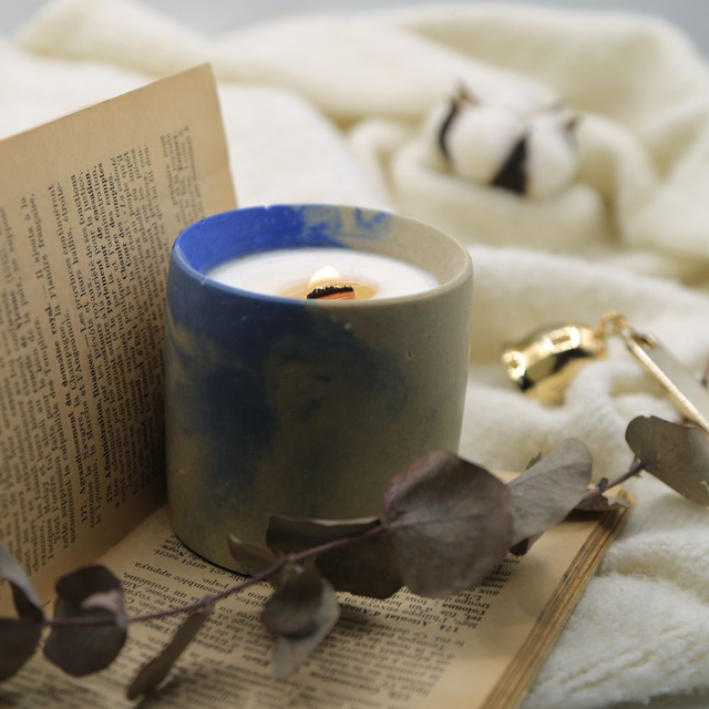 Chaque bougie est 100 % façonnée à la main : son contenant en béton, unique, dévoile ses nuances et sa texture naturelle, tandis que la cire de soja, coulée avec soin, diffuse un parfum délicat et raffiné à la fleur de coton de Grasse.