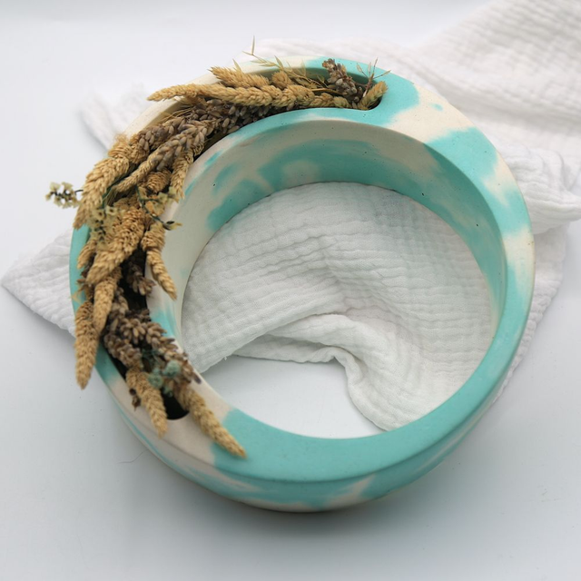 Pensée comme un véritable objet décoratif, cette couronne en béton est déjà sublimée par une composition florale unique de fleurs séchées, exactement comme sur la photo. Chaque pièce est façonnée à la main et chaque arrangement floral est singulier, faisant de cette création un objet véritablement pièce unique.